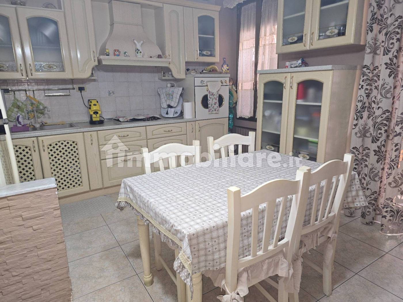 La porta di ingresso è blindata, il pavimento è in gres nella zona giorno e in bagno, in laminato in camera da letto e cameretta, le porte interne sono in legno.
